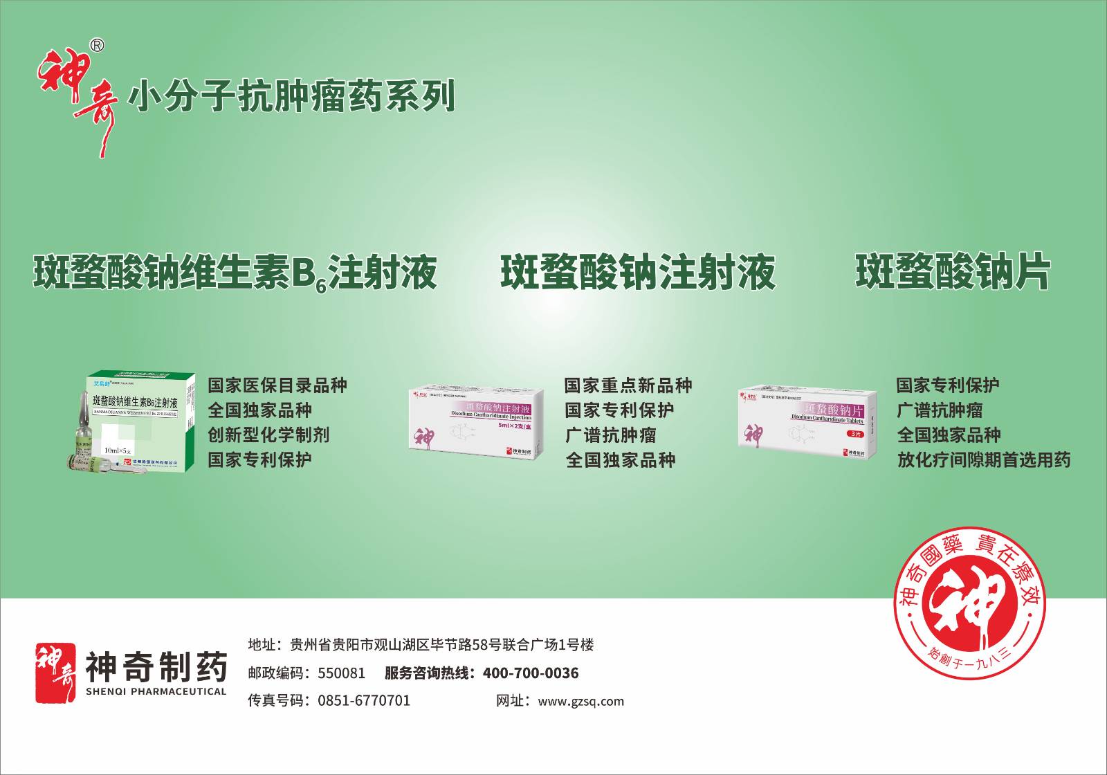 上海神奇制药投资管理股份有限公司(公司简称:神奇制药)是一家医药制造类控股型投资公司,是专业从事抗肿瘤、心脑血管、感冒止咳、儿童用药和抗真菌等类药品的研发、生产和销售的企业。公司为上海证券交易所A、B股上市公司(股票代码:A股:600613;B股:900904)。目前,公司注册资金为53,407.16万元,总资产30多亿元。 公司 “神奇”品牌有超过30多年的经营历史,2002 年被国家工商总局评定为“中国驰名商标”,2010年至2014年连续4年登上世界品牌实验室中国500强最具价值品牌排行榜。2015年1月12日神奇制药荣登“2015福布斯中国上市潜力企业100强”桂冠,2012至2018连续7年荣获中国医药最具影响力“中国制造100强”、“中国医药行业成长50强”。 神奇制药现有贵阳、龙里、都匀、罗甸等11个生产基地,占地面积合计约1000余亩,共拥有10多种剂型,37条生产线,均已通过了国家GMP认证。 神奇制药拥有小分子抗肿瘤药系列产品,包括斑蝥酸钠维生素B6注射液、斑蝥酸钠注射液和斑蝥酸钠片。斑蝥酸钠维生素B6注射液是全国医保目录产品、全国独家产品、创新型化学制剂、国家专利保护产品。斑蝥酸钠注射液是国家重点新产品、全国独家产品、国家专利保护产品、广谱抗肿瘤产品。斑蝥酸钠片是国家专利产品、全国独家产品、广谱抗肿瘤产品、放化疗间歇期首选用药产品。神奇抗肿瘤系列产品均为化学制剂,是斑蝥素的半合成衍生物,其抗肿瘤作用明显优于斑蝥素,但毒性较斑蝥素大大降低。斑蝥系列产品其抗肿瘤疗效确切,毒副作用少,且有升高白细胞的作用,减少放化疗对骨髓造血系统的毒性。斑蝥系列产品的针剂可在住院期间与其它抗肿瘤药联合使用,放化疗间歇期使用斑蝥酸钠片,能达到序贯治疗的目的。斑蝥系列产品上市以来已覆盖全国31个省(市、自治区)的各大医院,已为上千万的患者解除病痛。展开