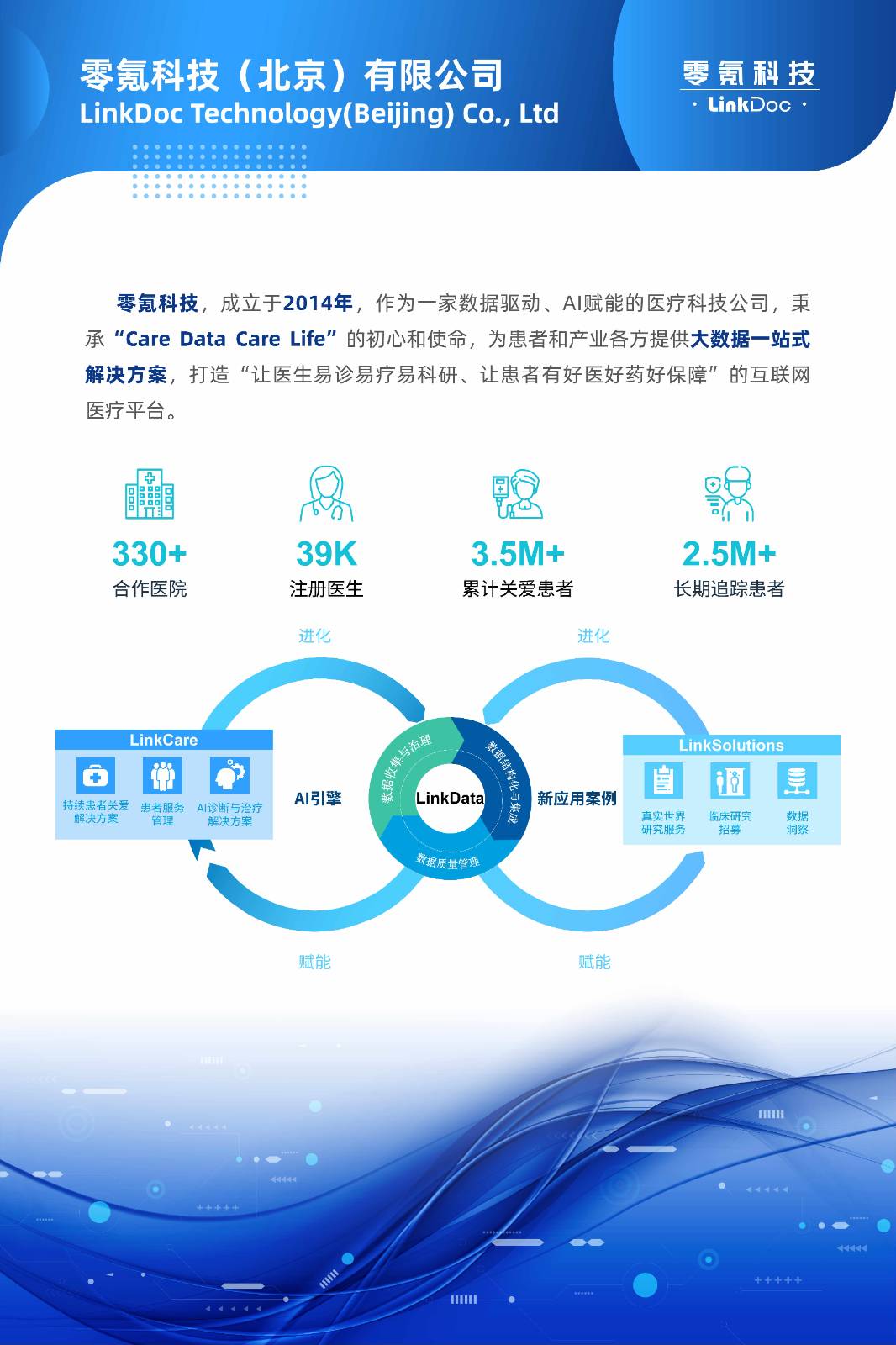 依托自主研发的全球先进的AI数据治理系统(LinkData),零氪在肿瘤、罕见病等重大疾病领域,开展基于精准生命科学解决方案(LinkSolutions)的临床招募、真实世界研究、数据洞察等服务,以真实世界数据为驱动,以医学证据为支撑,加速临床研究,赋能药品上市后再开发;开展基于重疾患者数字化健康管理平台(LinkCare)的互联网医院诊疗、线下服务中心照护和创新保险支付等全生命周期服务,以患者获益为中心,实现对重疾患者的精准、个性化照护和管理。
