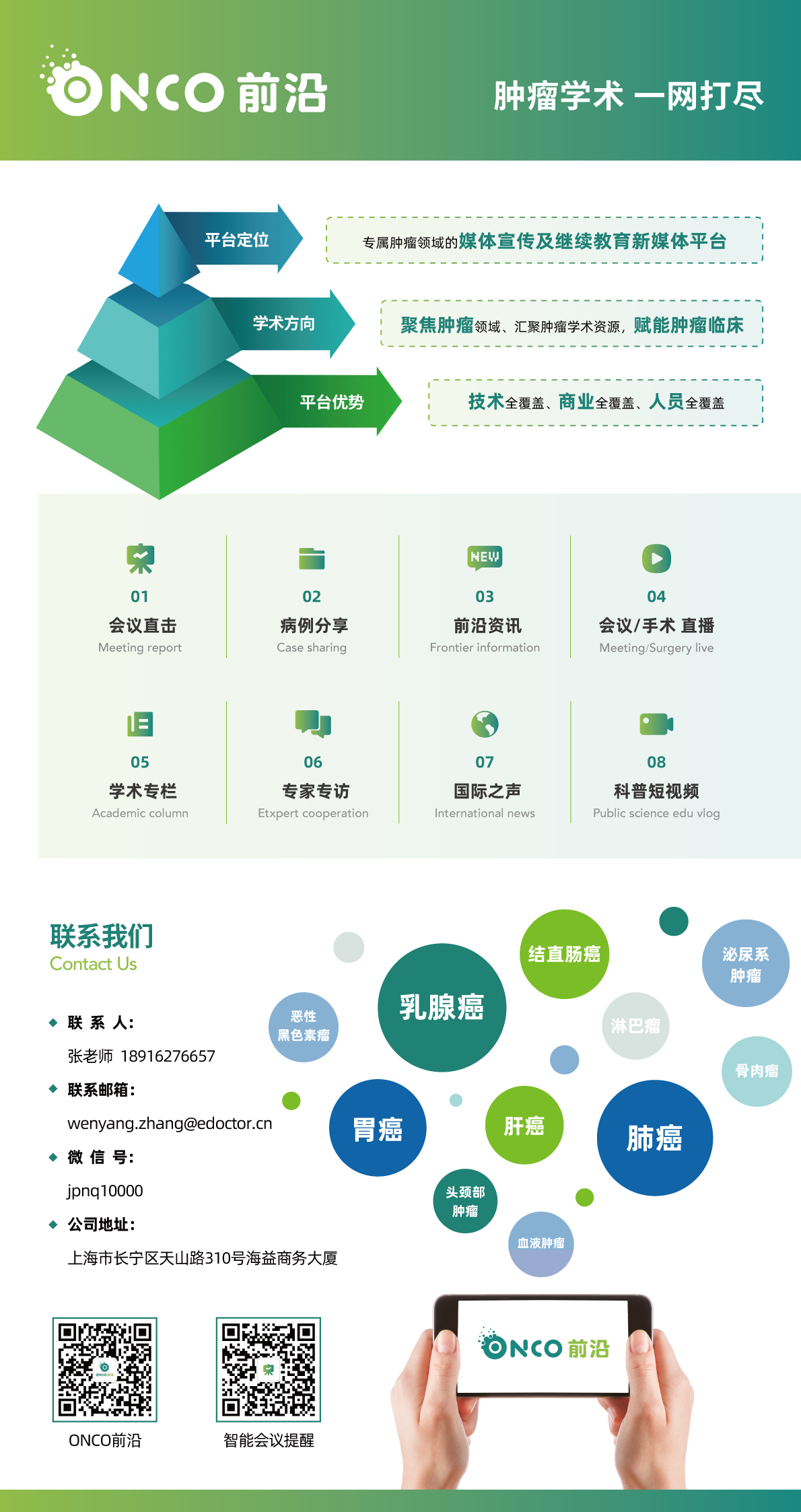 Vascular Frontiers 权威发布 | 传播肿瘤领域最新治疗研究进展 Live Conferences & Cases 手术转播&会议直播 | 改变中国肿瘤领域医生学习方式 Education Online 云课堂 | 随时随地学习,让时间更自由 User Generated Content 医生自媒体平台 | 医生自主生成文章/视频/病例/直播 Practical Clinical Tools 实用临床工具 | 肿瘤领域药物查询小工具 Conference Services 在线会务 | 会议直击展开